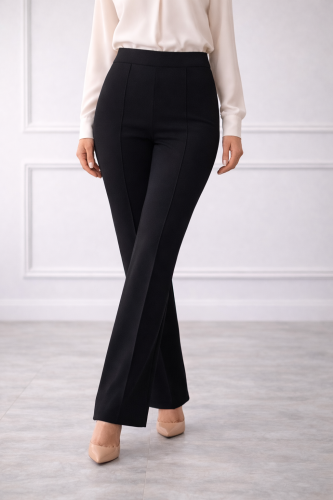 Spodnie Kaja to esencja kobiecej elegancji i komfortu, zaprojektowane z myślą o kobietach, które cenią styl, jakość i uniwersalność. Ich dopracowany krój pięknie modeluje sylwetkę, podkreślając talię i optycznie wydłużając nogi dzięki subtelnym, pionowym przeszyciom.